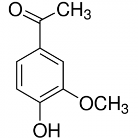 Product Name Acetovanillone Synonyms 1-(4-hydroxy-3-methoxyphenyl)-ethanon; 1-(4-Hydroxy-3-methoxyphenyl)-ethanone (acetovanillone); 3-Metoksy-4-hydroksyacetofenon; 4’-hydroxy-3’-methoxy-acetophenon; 4-Acetyl-2-methoxyphenol; 4-Hydroxy-3-methoxyphenyl methyl ketone; Acetoguaiacon; Acetoguaiacone CAS Registry Number 498-02-2 Molecular Formula C9H10O3 Molecular Weight 166.17 EINECS 207-854-5 -